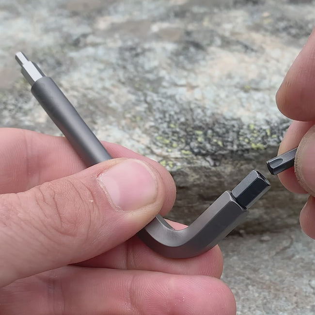 Mit 33 Gramm und der Form eines Inbusschlüssels ist dieses Werkzeug immer dabei. Sogar in der Hosen- oder Trikottasche. Korrosionsbeständiger Edelstahl und Schweizer Ingenieursqualität sorgen dafür, dass dich dieses unglaublich leichte Multitool bei all deinen Bike-Abenteuern begleitet.