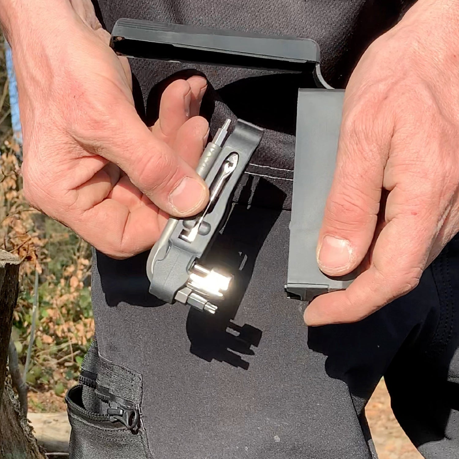Nahtlos kombinierbar mit Multitool-Erweiterungen und Mitnahme-Optionen. Zum Beispiel mit der Coworking6TL Multitool-Erweiterung und der Guard Schutzhülle.